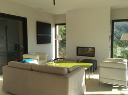 La maison est conçue sur un volume longiligne s'adaptant au terrain composé de terrasses étroites, offrant ainsi à chaque espace de vie une vue sur la vallée et sur les différents espaces de jardin aménagés.